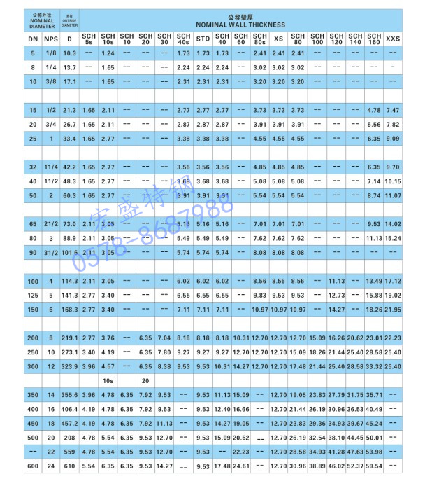 一、不銹鋼管美標尺寸對照表(采自的是美標標準ASME B36.10M ,B36.19M)